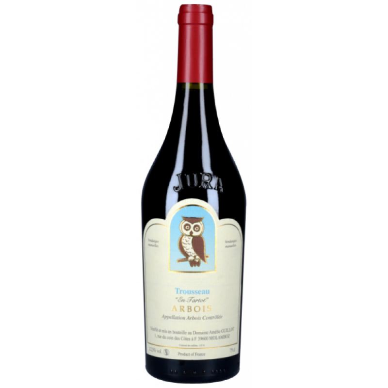 Domaine Amélie Guillot - Trousseau - En Tartot - Rouge - 2022 : En celte, "ar" et "bos" signifient "terre fertile", ainsi la production d'Arbois représente le plus gros volume des vins du Jura. Favorable au vins rouge, son sol est principalement composé d'éboulis de calcaires et de marnes irisées. La robe est rouge claire avec des reflets violets. Le nez est fin et soyeux, avec des arômes de fruits rouges. La bouche est équilibrée, légère avec notamment des notes de mûres et de cerises. La fin de bouche présente une note poivrée.