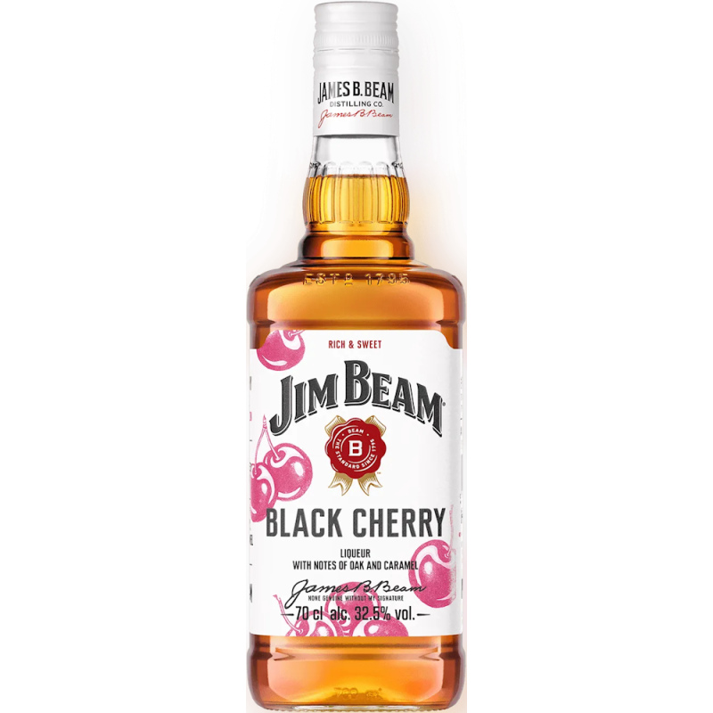 JIM BEAM - Black Cherry - Bourbon Whiskey : Note fruitée de cerise noire. Au cours d'un processus complexe, l'arôme de cette cerise noire est marié à du Jim Beam de 4 ans d'âge. Le résultat est un goût unique. Que ce soit en shot glacé ou en long drink, Black Cherry par Jim Beam est toujours une expérience gustative absolument incomparable.