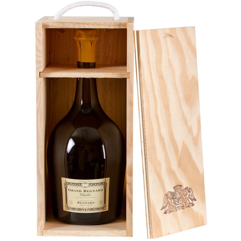Régnard - Chablis Grand Régnard - Coffret Bois - 2023 : Créé en 1992 par le Baron Patrick de Ladoucette, le Grand Régnard présenté dans une bouteille unique, est une cuvée spéciale, sélection des meilleures parcelles de Chablis de la Maison Régnard. Chaque année, cette cuvée révèle l’expression de la jeunesse et du fruit de Chablis.