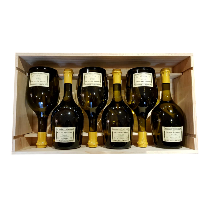 Caisse Bois - 6x Régnard - Chablis Grand Régnard : Créé en 1992 par le Baron Patrick de Ladoucette, le Grand Régnard présenté dans une bouteille unique, est une cuvée spéciale, sélection des meilleures parcelles de Chablis de la Maison Régnard. Chaque année, cette cuvée révèle l’expression de la jeunesse et du fruit de Chablis.