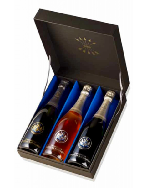 Ce somptueux coffret vous permettra de découvrir et d’apprécier la noblesse des différents arômes qui font toute la notoriété de cette maison prestigieuse. Ce coffret comprend une bouteille de Brut, une bouteille de Rosé ainsi qu'une bouteille de Blanc de Blancs.