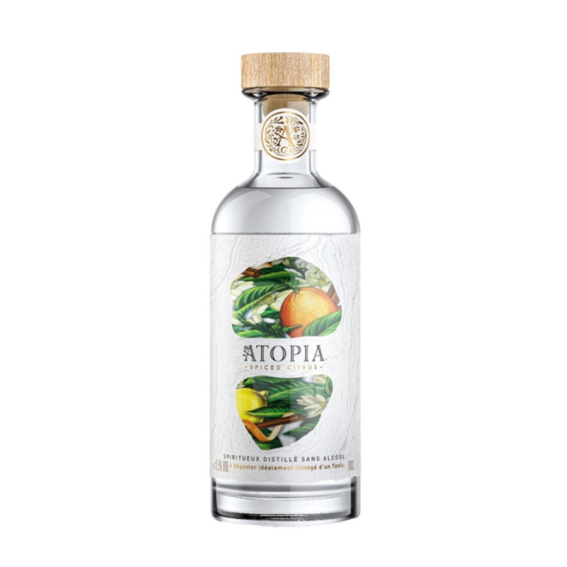 Atopia Spiced Citrus - Sans alcool : Atopia est un spiritueux distillé sans alcool fabriqué à partir de distillats, d'extraits de plantes et d'arômes naturels afin de créer une nouvelle génération de spiritueux.