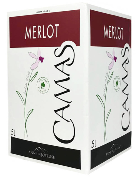 Anne De Joyeuse - Camas - Merlot - BIB - 10L - Rouge : Conduite raisonnée dans l’observation des cycles naturels de la vigne et développement de la biodiversité. Les parcelles, sur des sols argilo-calcaires, ont été sélectionnées en Haute Vallée et sur le terroir océanique.
