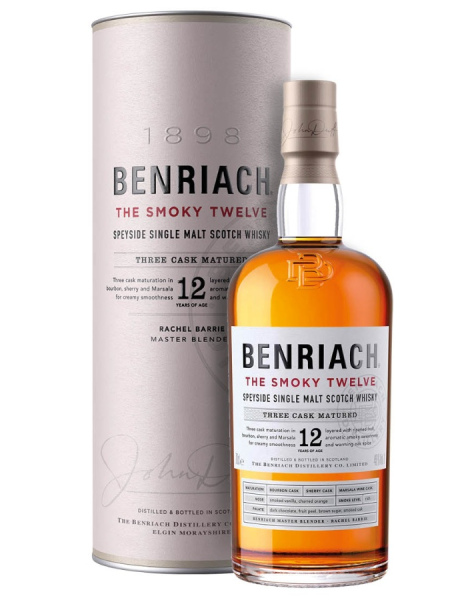 Benriach - The Smoky Twelve Scotch Whisky - 12 Ans - Canister : The Smoky Twelve révèle un riche caractère fumé et possède son propre profil aromatique, grâce à un assemblage atypique et rare de trois types de fûts : bourbon, xérès et marsala. Le résultat est un single malt tourbé de 12 ans d’âge, crémeux et qui exhale des notes de fruits mûrs et de chêne épicé, ainsi que des arômes doux et fumés, avec une finale de cacao et d’orange fumée.