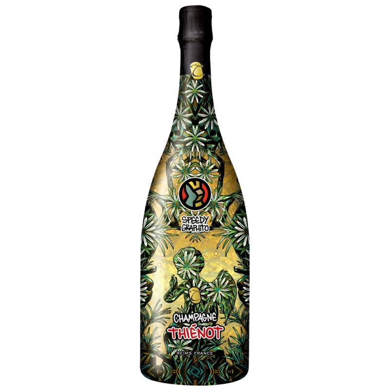 En 2016, ChampagneThiénot et Speedy Graphito ont collaboré une première fois en proposant une oeuvre unique, un magnum de Thiénot Brut sublimé par les codes propres à l'artiste plasticien - émoticônes, Lapinture - et par les couleurs de la maison, le rouge et l'or. Cette création avait alors suscité véritable enthousiasme.